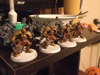 Another disclaimer: I've never had a Games Workshop product before this point. I'm aware of the reputation they've garnered, but for the time I've been buying things from them they seem to have turned a new leaf. So there's that. Anyways, I open up this big box, and I'm greeted with tons of plastic. The miniatures are wonderfully sculpted, and the plastic holds detail beautifully. The sprues are well labeled, and as inexperienced as I was with this kind of miniature I found the process to be very easy. Underneath the plastic, thankfully protected by a thin cardboard insert, were the rules and guide to the game, as well as the assembly instructions. Naturally, I proceed to ignore that and go straight for what I thought were the coolest minis in the set: the Stormcast Prosecutors.
